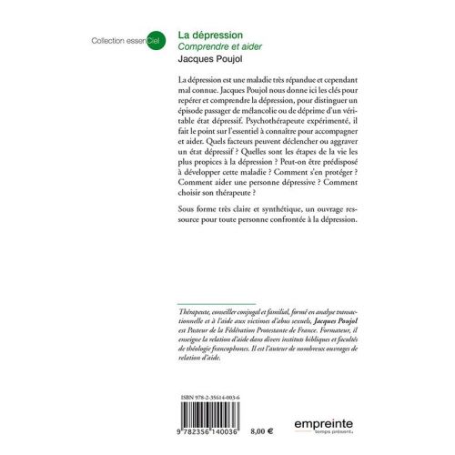Jacques Poujol nous donne ici les clés pour repérer et comprendre la dépression, pour distinguer un épisode passager de mélancolie ou de déprime d'un véritable état dépressif.