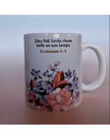 Décor imprimé résiné en relief, fleurs recto/verso. Le verset est gravé au laser : « Dieu fait toute chose belle en son temps. » Ecclésiaste 3 : 11